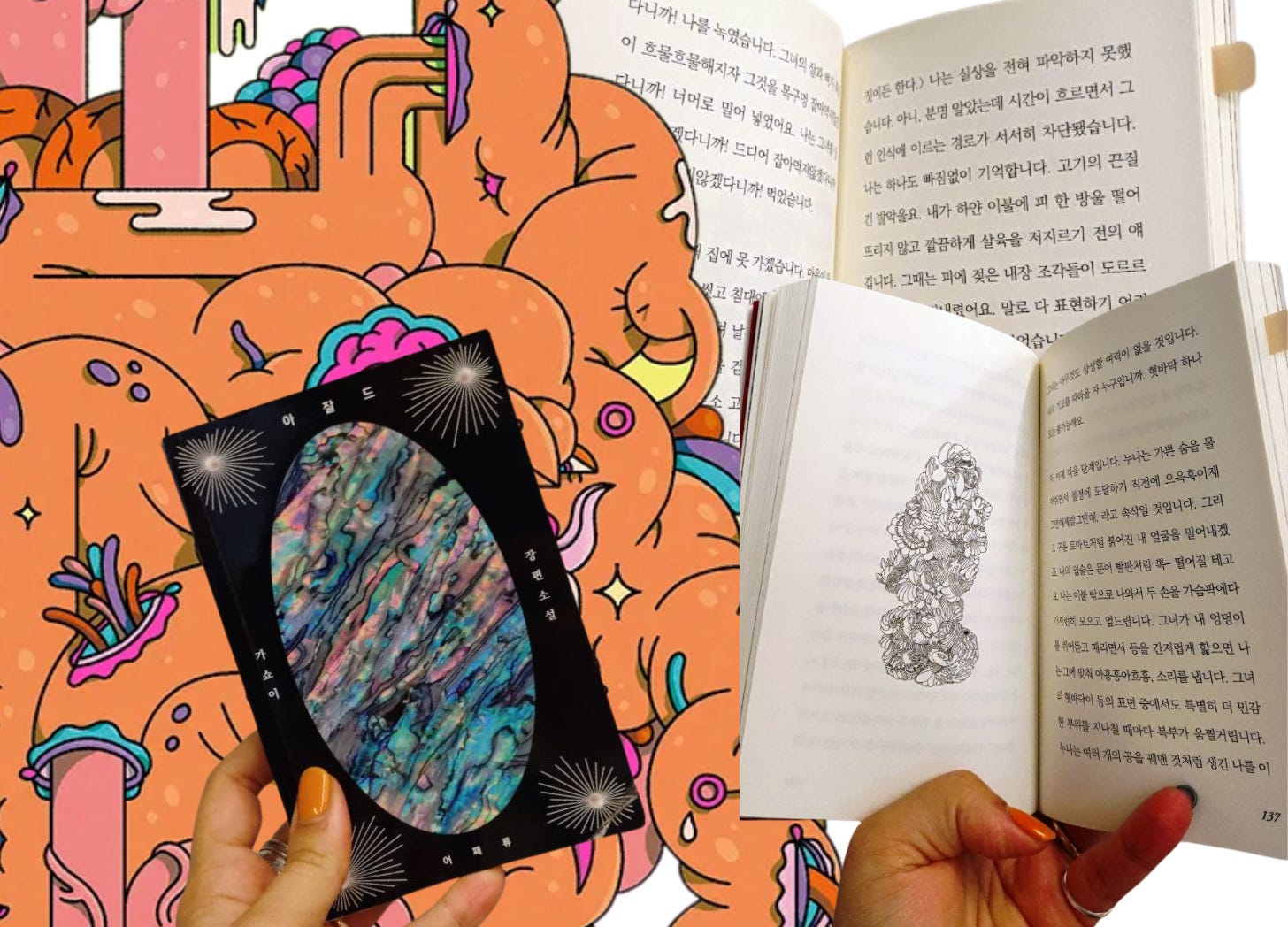 In coreano lo spazio tra le lettere è molto importante per comunicare in maniera efficace. Io ho immaginato Mumu come un corpo con un apparato vocale diverso da quello umano, perciò quando è sé stesso questa difficoltà viene trascritta uniformando lo spazio tra le lettere (metodo che è stato utilizzato anche nella traduzione inglese). Questo perché volevo che l’esperienza di lettura, quando Mumu abbandona le forme umane, fosse più faticosa da capire. Nella traduzione italiana, invece, abbiamo scelto una forma del testo che richiamasse il corpo alieno di Mumu, con le sue mutazioni e trasformazioni, come si vede anche nelle illustrazioni.