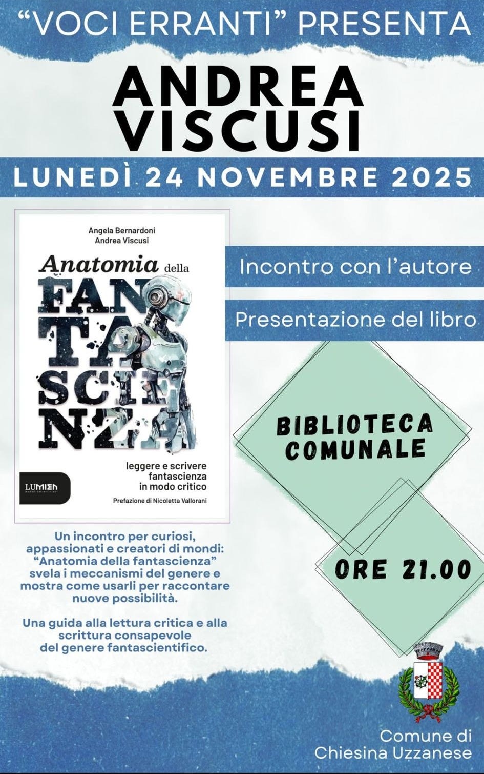 Lunedì prossimo Andrea sarà alla biblioteca comunale di Chiesina Uzzanese per parlare di Anatomia della Fantascienza. È la vostra occasione per farlo parlare per un’ora intera di Dune, non fatevela scappare.